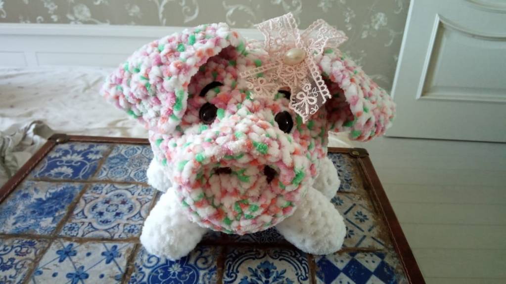Вязала по схеме,Леночка.Сложностью оказалась утяжка мордочки,об этом в схеме небыло,и о том,как собрать воедино-тоже.)Пришлось импровизировать.).
