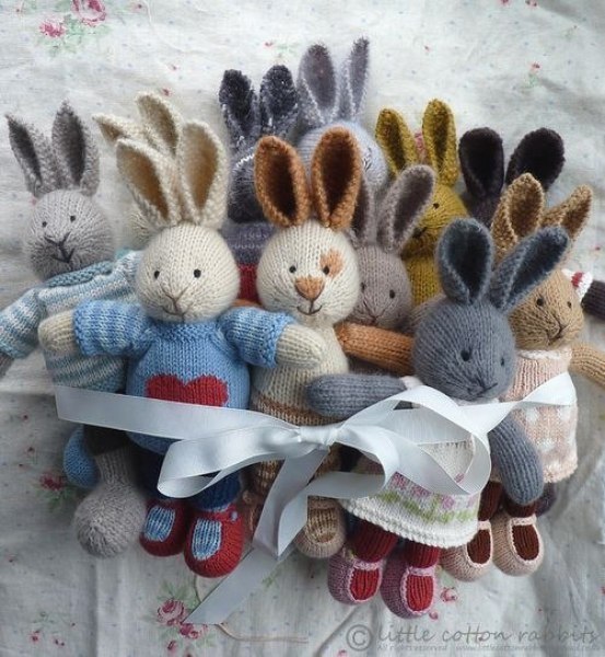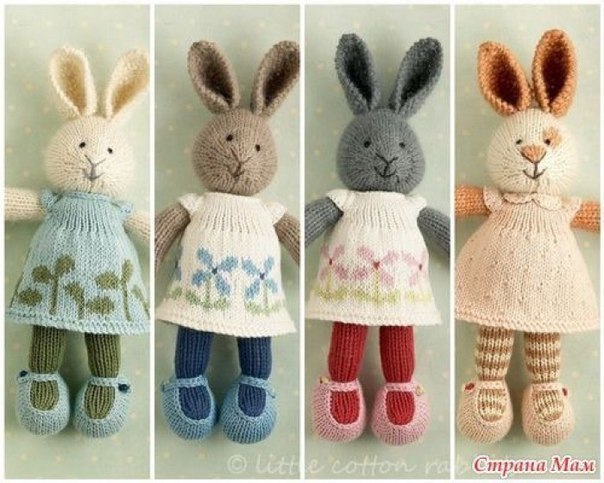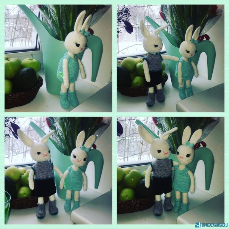 Вот таких зайчиков дочке вязала. Сначала появилась Беляночка, а потом ей понадобился Проша