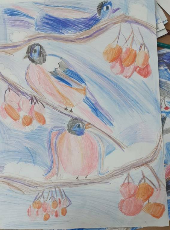 Варя рисовала снегирей в художке и в музыкалку.