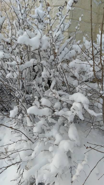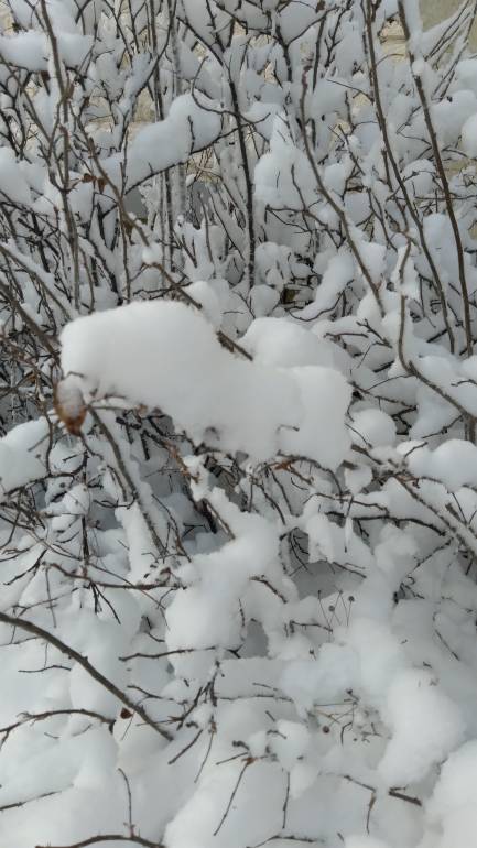 Вот такие сугробы намело, деревья заснеженные стоят, как на картинках