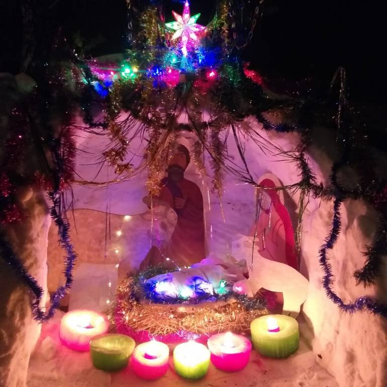 Я в гостях у родителей. Почему-то в этом году около храмов и у главной ёлки нет вертепов. На ночной службе было заметно меньше народу, чем в прошлом году.