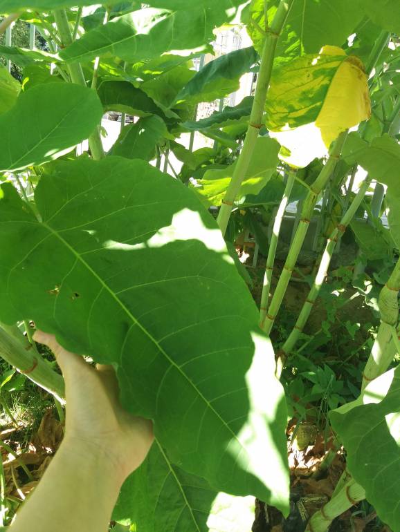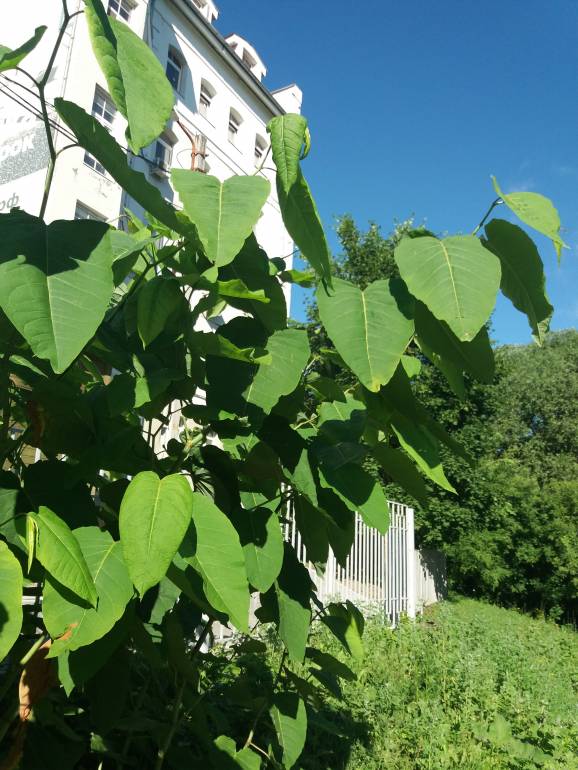 Пришла на работу раньше, офис закрыт. Прогулялась около работы дерево с огромными листьями