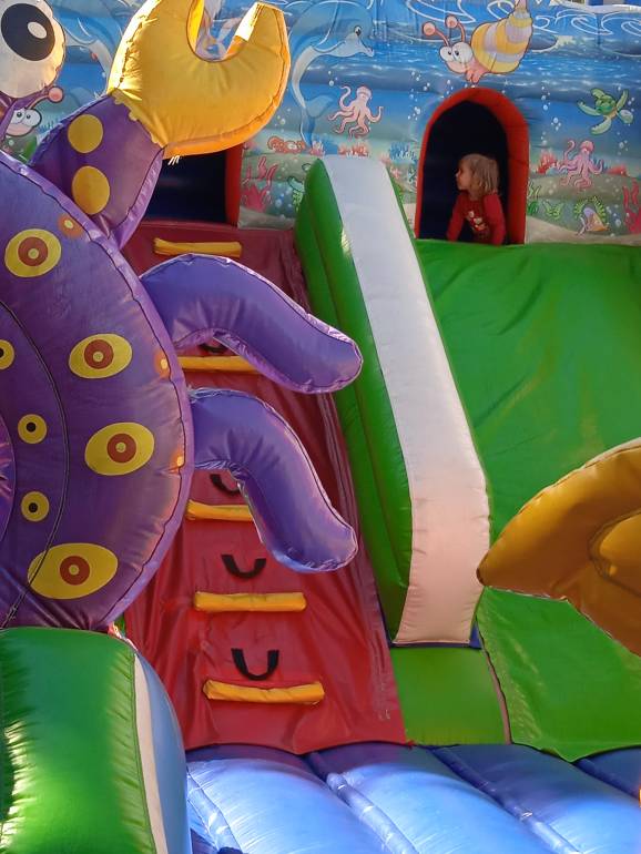Пока собираются все домой выезжать, Катя на батуте надувном