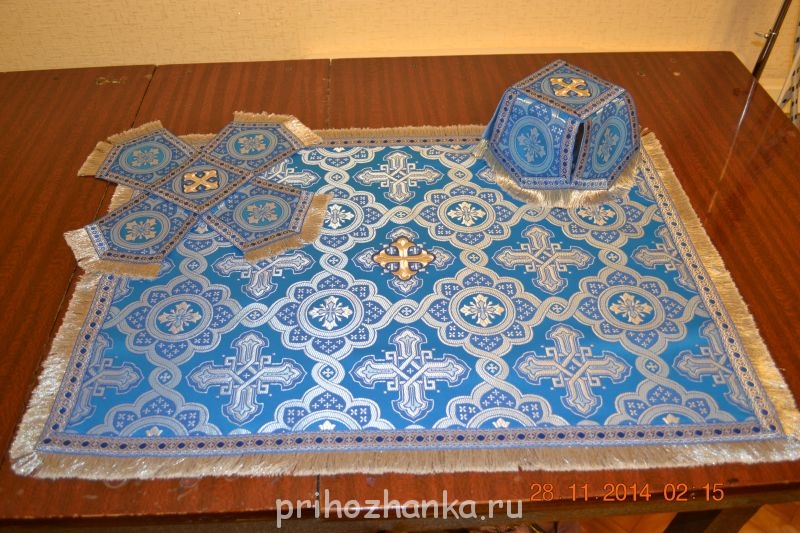 Девочки, нужен ваш совет и мнение. Нашла фото с интересной формой покравцов - квадратные, целые (храм наш. служил владыко Лонгин в прошлом году на Светлой седмице.). Хочу тоже что-то такое же сотворить для сельского прихода, уж сильно в душу запало, красиво. Ткань есть, дизайны можно подобрать похожие. С точки зрения технологии обработка будет даже проще, чем классическая форма покровцов, особенно если бархат будет. Думаю только центральную часть укрепить, чтобы в чашу не "проваливались" и форму держали. Литургический комплект хочу сделать в дар приходу. Даже и не знаю как теперь вопрос конкретно поставить... Не будет ли считаться грехом с моей стороны сшить что-то подобное?