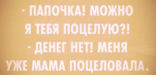 Мамаша так властно крикнула своему ребёнку :"Брось каку!", что четверо мужиков, озираясь, выбросили недокуренные сигареты, пятый, почему-то, отстранился от идущей рядом жены.