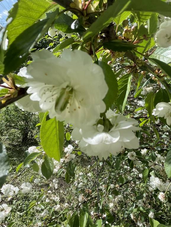 У нас на набережной бульденеж цветет, не пахнет, ветки до земли свисают под тяжестью многоцветья.