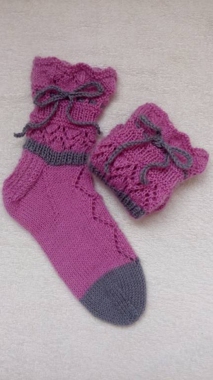 Они простые. Но теплые. Пряжу купила случайно на рынке. Видно было, что женщина распродает свои личные запасы.