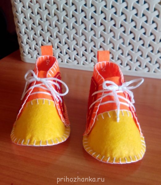 Среди них - шитие из фетра. Стачала младенцу пинетки