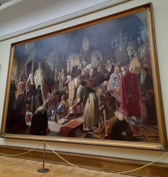 Во второй половине дня поехали в Третьяковскую галерею. Купили билеты, аудиогид, к нему дают проводные наушники.