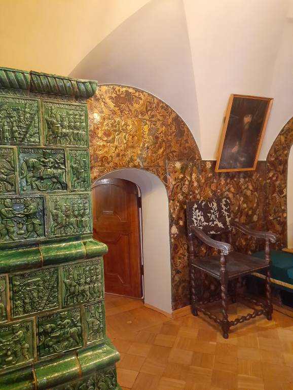Комната просторная, с большой изразцовой печью. На переднем плане - сундук для приданого дочерей.