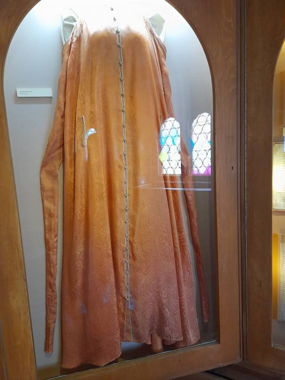 Рукава длинные, по назначению не использовались. На платье есть прорези для рук. Очень длинный рукав на одежде считался признаком знати.