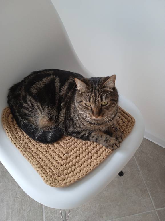 Связала сидушку на стул - и вот он, мой дорогой, который вообще не признавал этот стул.