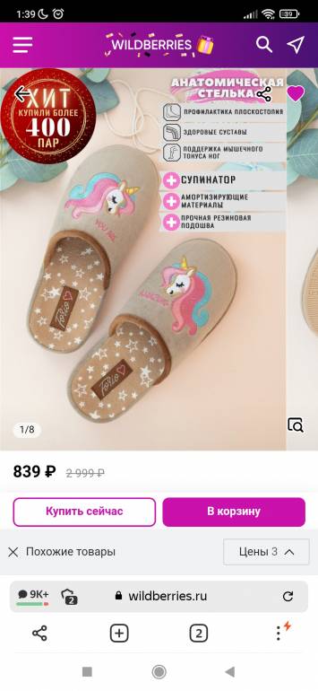 И были тапочки еше дешевле , я их в корзину класть не стала ( отзывы плохие, что через 10 дней уже носить нельзя).