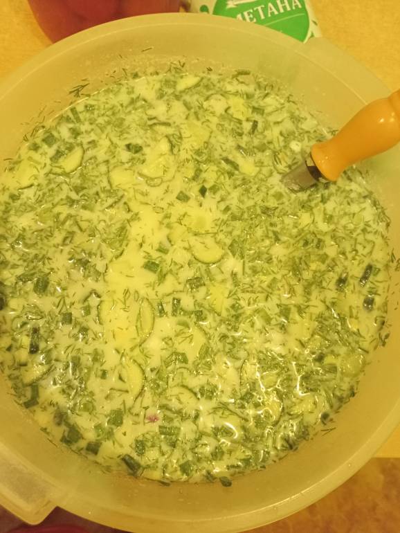 мы вчера в деревне окрошку делали , я бы только её и ела.. Люблю. Ну и погода располагает , +32 у нас..