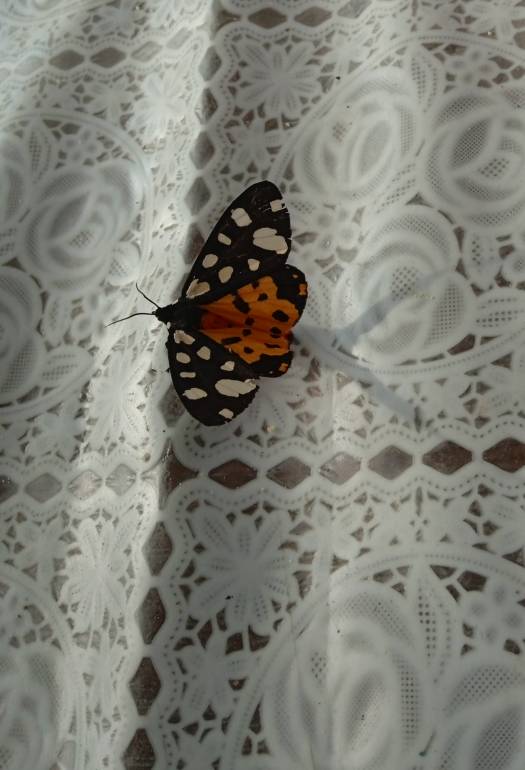 поймали ей бабочку Медведицу,их несколько видов. Эта деревенская