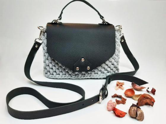 Я тут тоже на мк наткнулась сумочки, только там донышко, клапан и ручка натуральная кожа как основа, а связана из трикотажной пряжи
