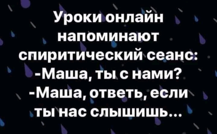 Супенко, а кто это у тебя там так кричит в комнате? Старший брат? Тоже на онлайн-уроке? Ну попроси его сделать колонки потише, а то меня голос физика с мыслей сбивает….