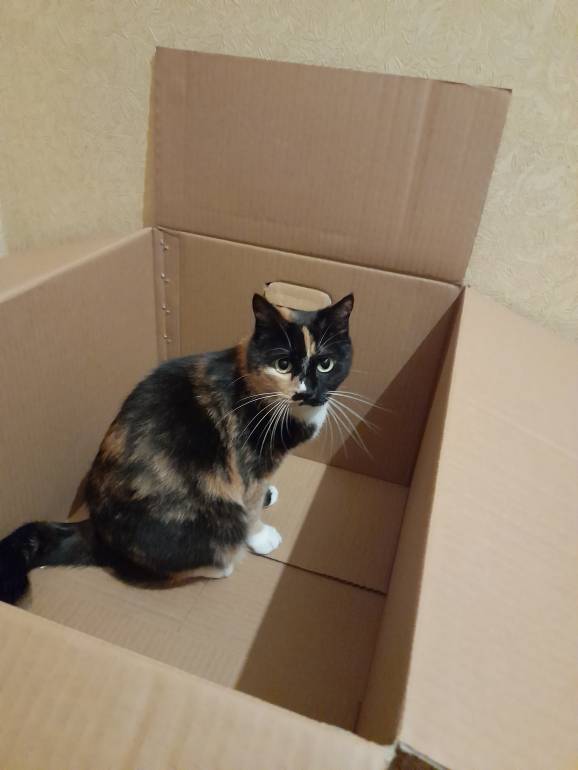 Она и прыгала в неё, и выпрыгивала обратно, и охотилась на нас из этой коробки.