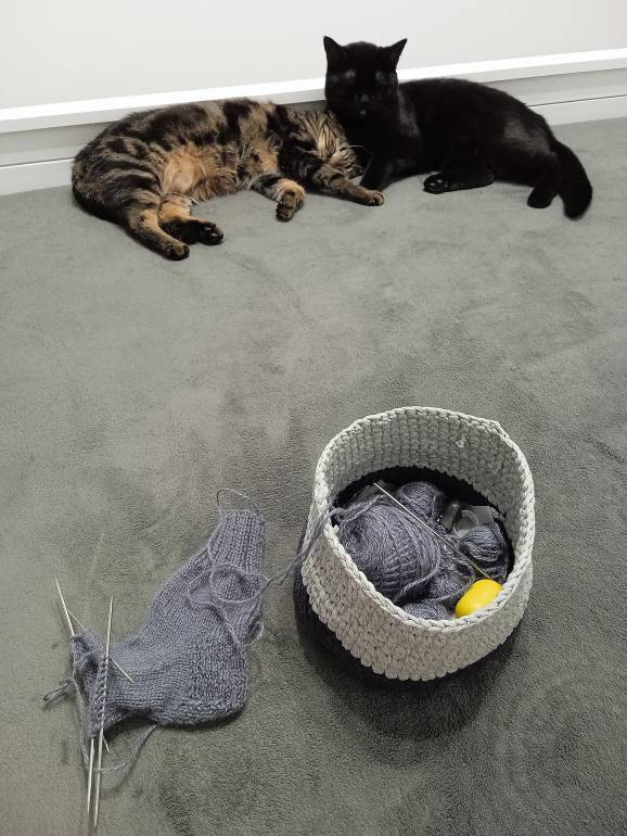 Они и в корзинку залезут, хоть она и не по размеру, и пряжу по всей квартире растащут, поэтому все убираю повыше и подальше.