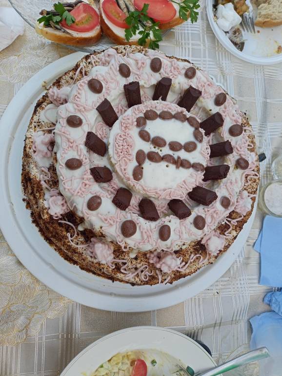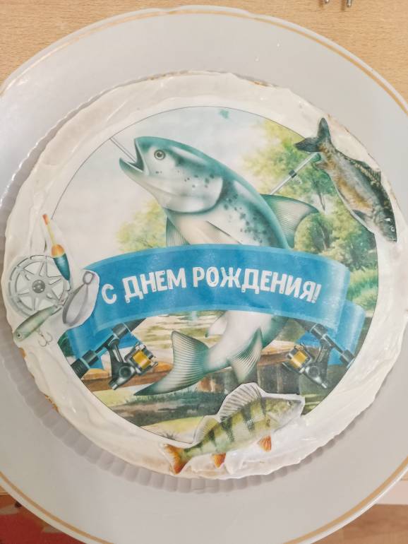 Мы слепили торт для папы, подарочный. Крем новый, подсмотрела в интернете, но сделала по своему
