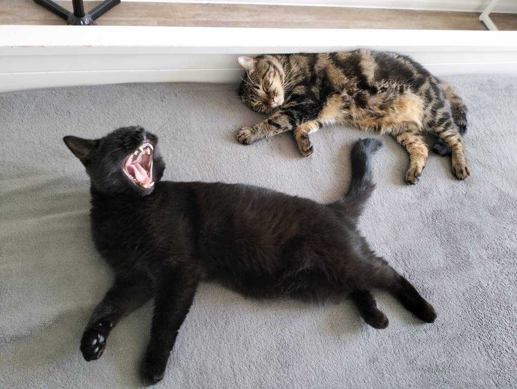 На верхней фотке тоже хотела синхрон запечатлеть, но не успела - Мася проснулся.