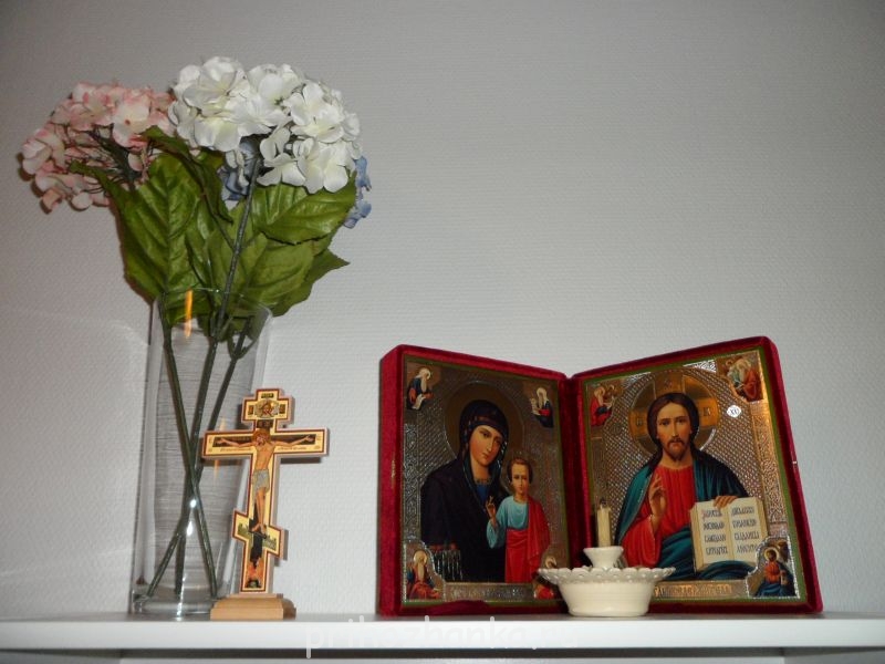 Вышила совсем немного, и отложила надолго, и вообще забросила вышивку, потом ее дошила моя тетя и подарила мне.. И теперь она украшает мой иконостас.