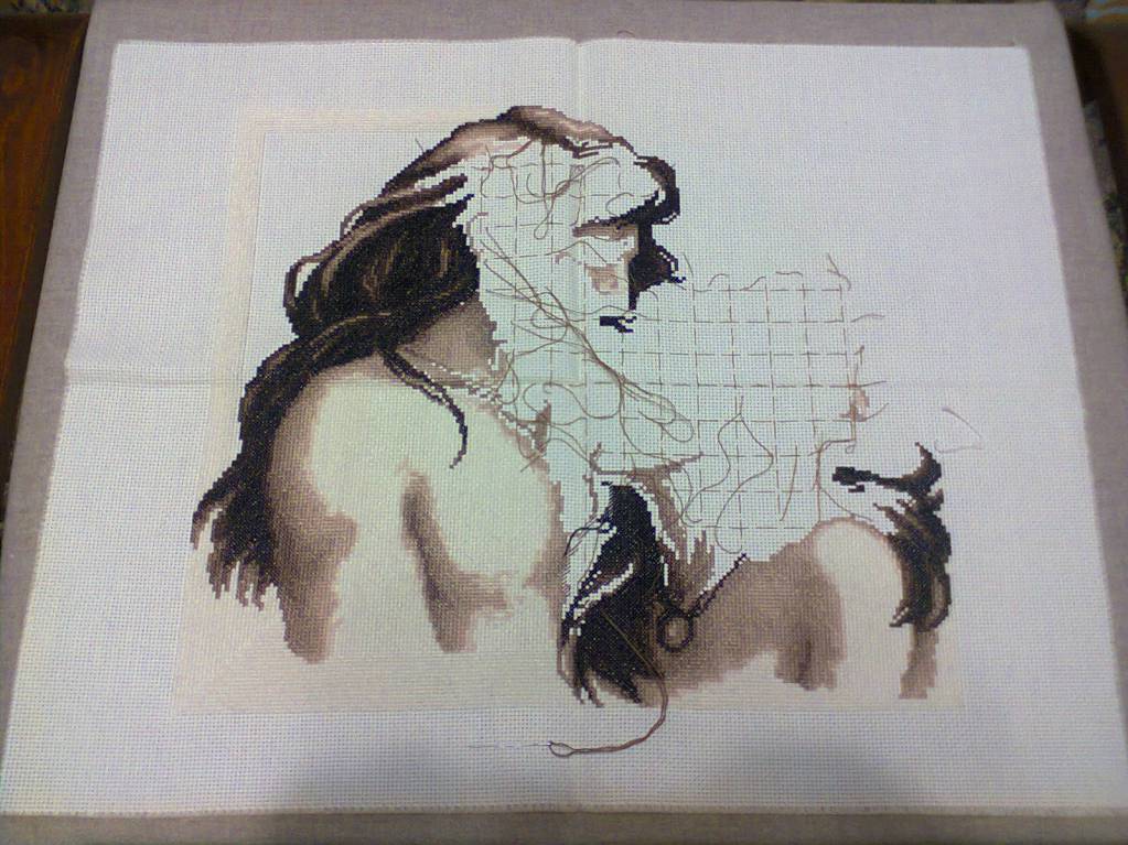 Вот что вышито на сегодняшний день, сколько это в крестиках, не считала, считать начну с сегодняшнего дня (если получится)