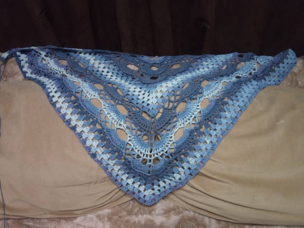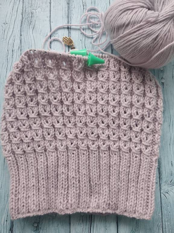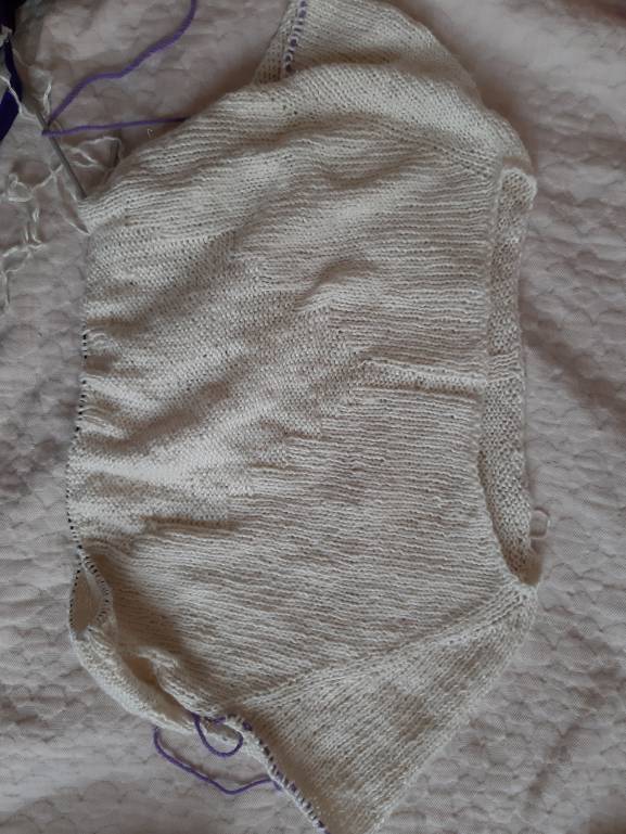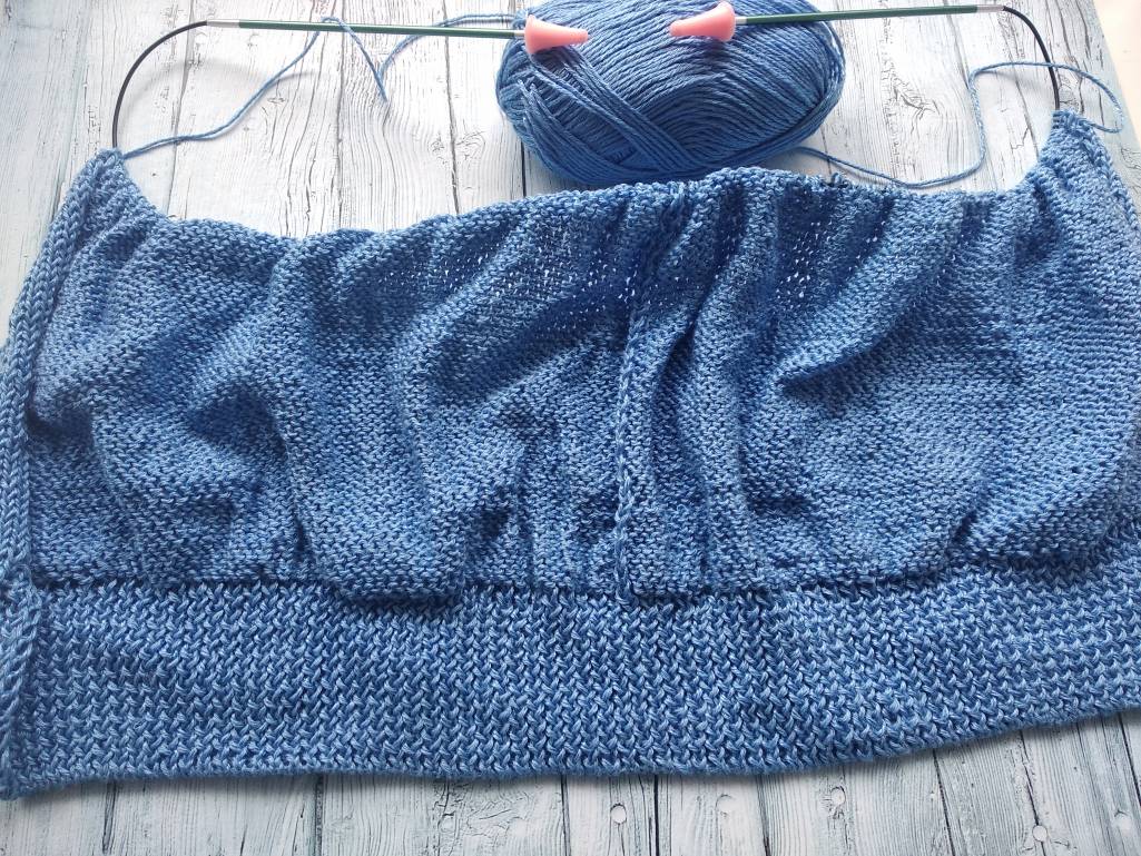 Продолжаю вязать топ, вторую шапку пока не довязала, но продвигается понемногу, ещё на этой неделе был связан жилетик из Дундаги для сыночка моей знакомой(родился на месяц раньше срока) и пледик для клуба 28 петель. Правда, плед и жилет пока без ВТО . Плед ещё и блокировать буду потому как вязала расширением из 3 петель (впервые так). Честно, пока не могу сказать понравилось ли мне- посмотрю как полотно станет после блокировки. Уж проще было вязать обычным квадратом.