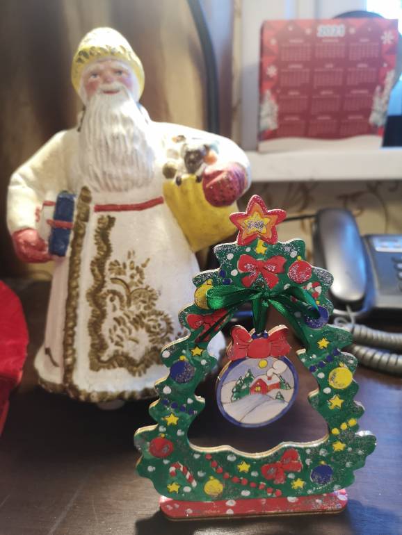 Ещё купила набор творческий за 99р. Там елочка из дерева, краски, блестки и кисть. С Колей сделали сегодня.