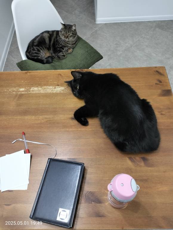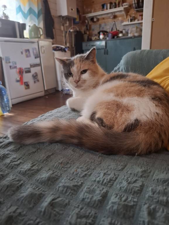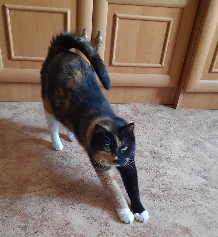 А старшая кошка у нас грубиянка, очень строгая. И кот, он хоть ещё маленький, но серьезный парень.
