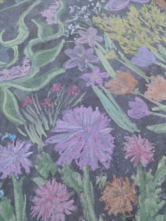 Даша рисует на плитке во дворе