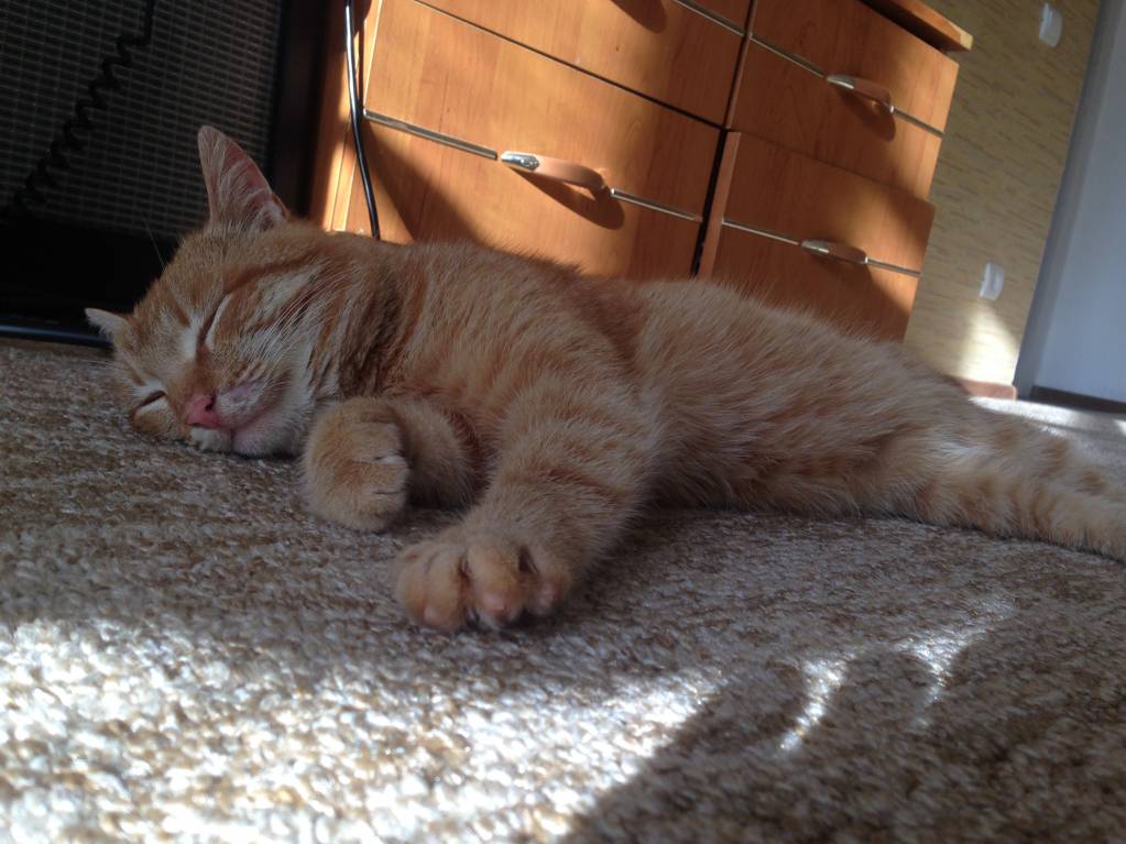 Вот это рыжее чудо сегодня орало возле нашей двери. Сердце мужа дрогнуло и он запустил кота домой, этот рыжик обошёл как хозяин все комнаты и сел возле холодильника, ждать угощение. Видно, что его выкинули, он был видимо домашним, плотненький и ухоженный. Мы его покормили и отправили обратно в подъезд, вечером сие рыжее существо ждало нас у двери, решили попробовать и оставить себе, посмотрим как мы с ним уживёмся в одной квартире.