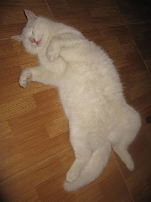 У меня кошка тоже белая, с улицы приходит как хрюшка