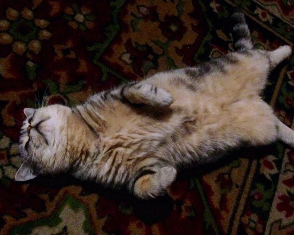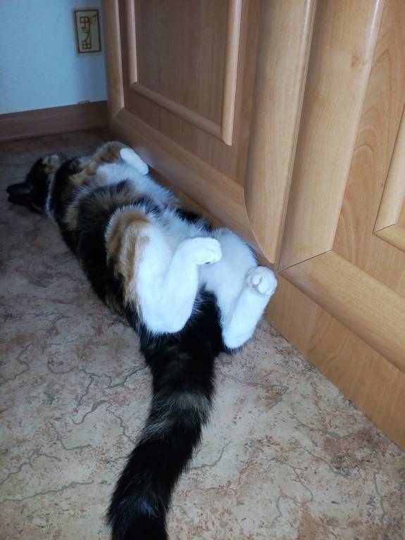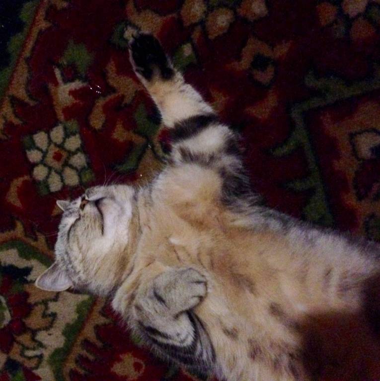 а спит один к одному как моя, на спине поджав передние лапки как зайка....так хочется погладить по пушистому пузику но не всегда позволяет...грызется