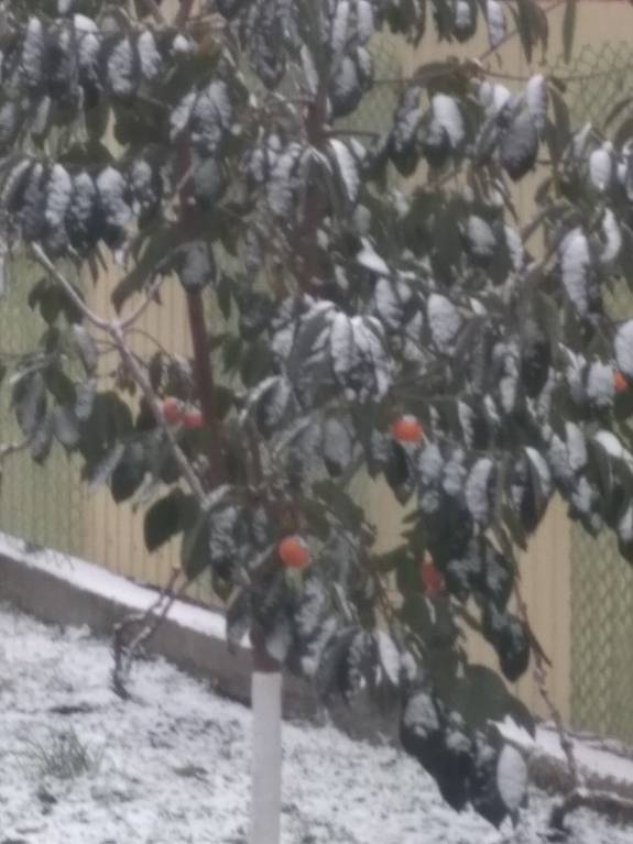 На хурме листья осыпаются, а плоды висят крепко и ещё совсем твердые - ждем-с.
