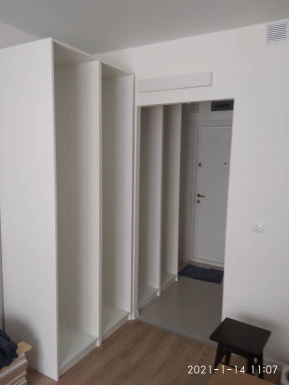 А вот и наша квартирка. Вчера собрали четыре шкафа, сегодня навесим двери и полки. Надеюсь убрать туда к вечеру все наши вещи, надо освобождать место для дивана, его в сб должны привезти.