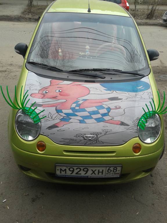 На прошлой неделе нам попалась вот такая чудесная веселая машинка на улице.