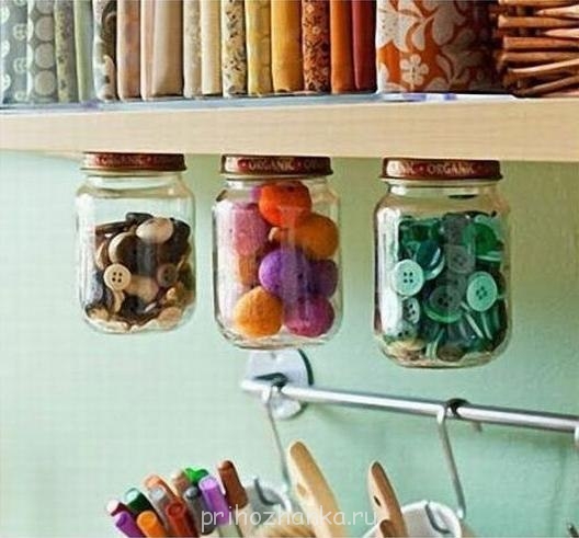 Как у всякого рукодельника у меня куча всего (а вдруг пригодится?) Чтобы это все не валялось, я завожу массу коробок, коробочек и банок. Все оклеиваю пленкой- самоклейкой. И красиво и удобно и недорого