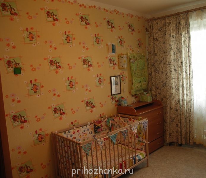 И еще (может, кому пригодится ): как я наклеила обои. Ваня пока живет с нами, в спальне. Но мне ТАК хотелось, чтобы у ребенка был свой, детский уголок... И выход нашелся!
