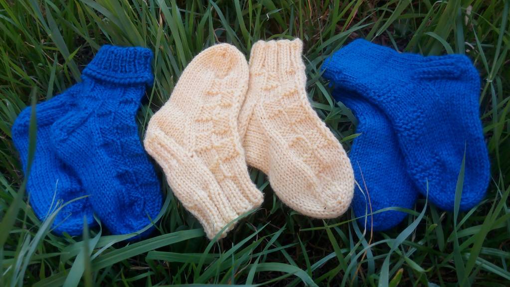 Вот, пока собиралась сфотать, носочки слегка потрепались, т.к. дочка в них спит каждую ночь.