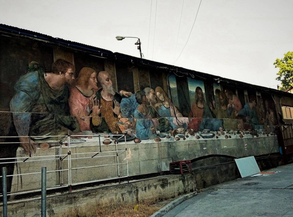 Фото сделано 25 мая 2024 года. Граффитти ТАЙНАЯ ВЕЧЕРЯ (копия фрески Леонардо Да Винчи в музее в Турине в Италии)