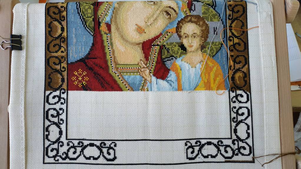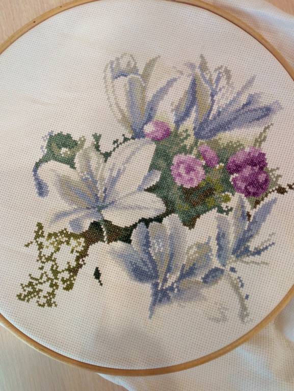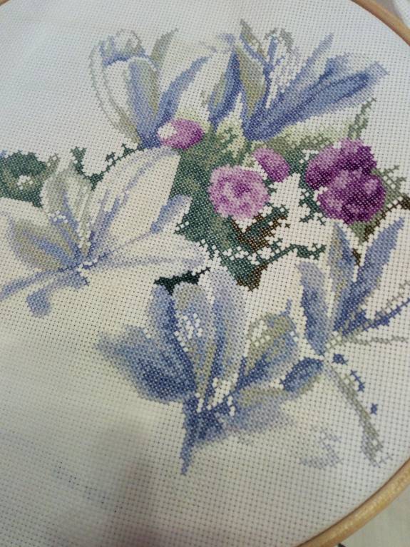Я все-таки не взялась за новую работу,пока не закончу старое. На неделе были дожди - удалось вышивать немного. Планов не строю,потому что в ближайшее время не возьмусь за работу..