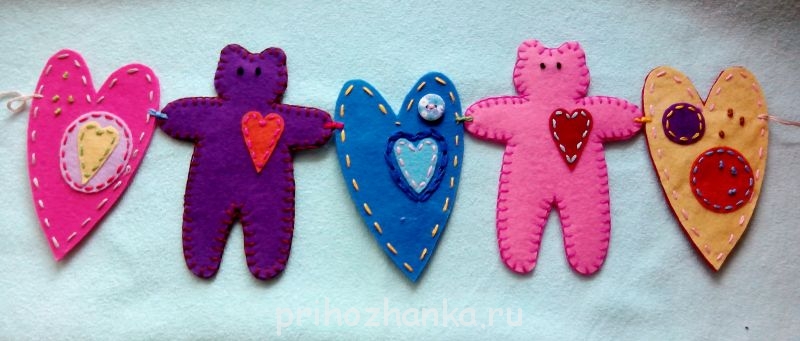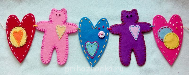 А еще у моей подруги дочурка родилась. Вот, собираемся в гости, а я в подарок сшила гирлянду в кроватку (ну, или в колясочку)