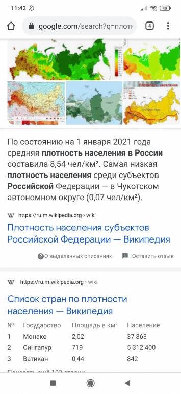 Сюда стоит добавить, что плотность населения в РФ составляет 8,54 чел на км. кв.