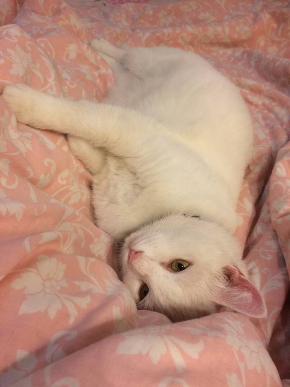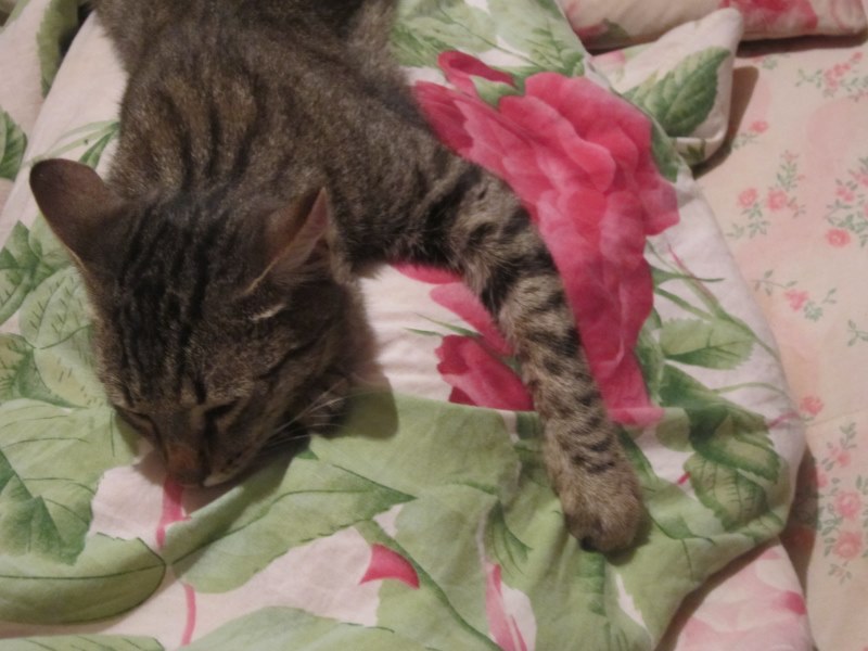 Морда кошачья, пришла ко мне в постель , в наглую улеглась, гоню её... уходить не собирается, урчит и топчется предано глядя в глаза. Придётся и мне , нагло убрать Алиску