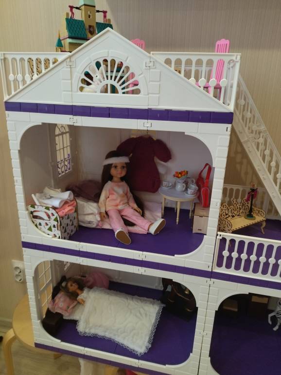 Девочки поставили на табуретки , цокольный этаж у них теперь-) Жители дома постоянно меняются