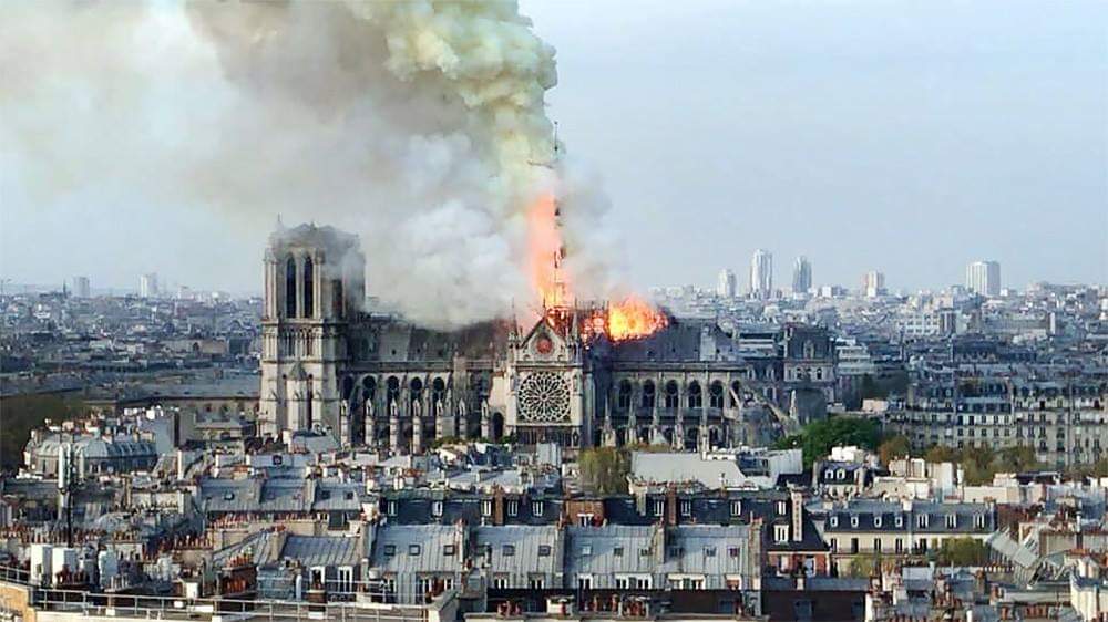 охваченный пламенем шпиль собора на глазах у всего мира кренится вбок, надламывается посредине и падает на гибнущее здание. люди не верят глазам, кажется, наступает конец времен. те, кто постарше, вспоминают свое личное, внутреннее, ни с чем не сравнимое чудовищное ощущение вакуума внутри, чувство конца света, когда упали башни-близнецы. они не думали, что переживут это вновь