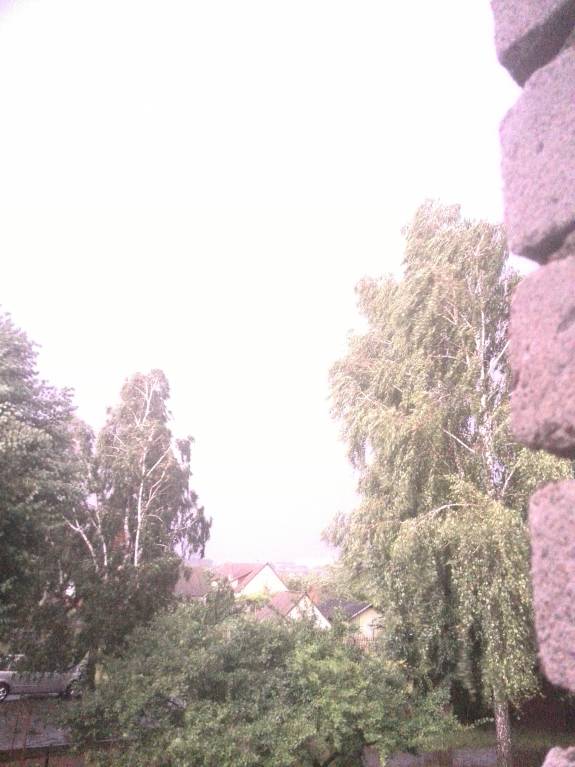 С утра было солнце - так радостно!А сейчас ливень сильнейший пошел и град!Град с горошину, но очень сильный.