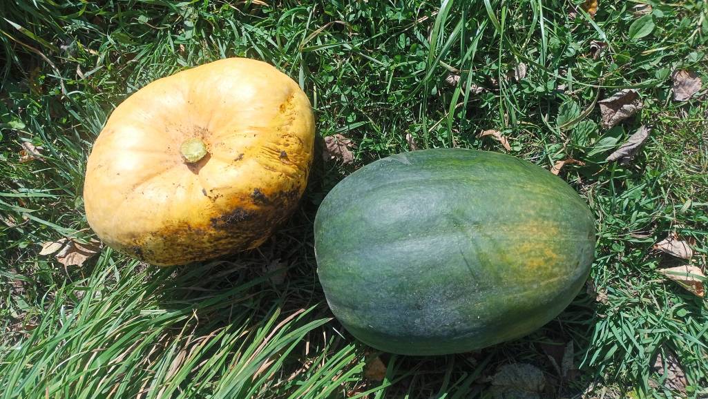 Собрала тыкву - две такие большенькие выросли. Одну оставила другу-помощнику, вторую на неделе буду разделывать. У меня на нее планы.