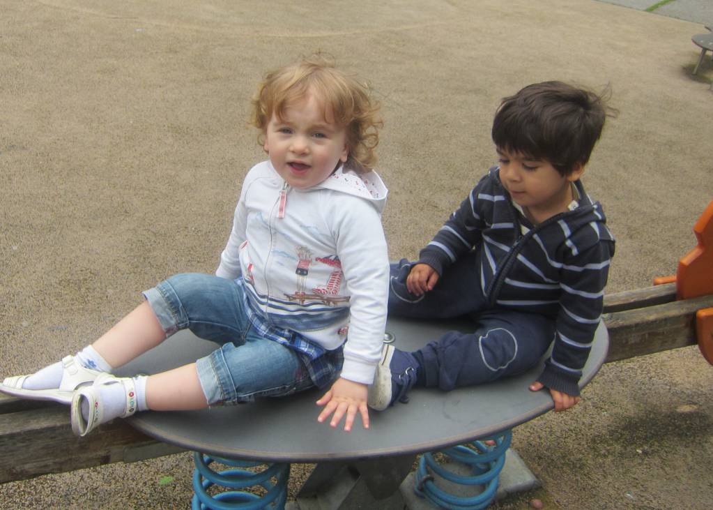 Потом мы той же компанией отправились на детскую площадку, где к нам присоединились папы Сары и Элиаса. И в районе полудня все решили пойти куда-нибудь вместе пообедать. Ну, и здесь мой эгоизм оказался превыше здравого смысла. Мне очень захотелось пойти с ними, хотя я прекрасно понимала, что это уже Аделинкино время дневного сна (Элиас с Сарой-то не просыпаются в 6.30 каждое утро.. Поэтому и дневной сон у них попозже может начаться...). В общем,я соогласилась в надежде, что присутствие других детей поможет Аделинке "продержаться" подольше. Но нет. где-то в середине обеда Аделинкино терпение лопнуло, она стала сначала баловаться с едой ("нарываться" откровенно..), потом рыдать... В оббщем, нам ничего не оставалось, как уйти оттуда, толком не поев и раньше остальных... Аделинка продолжала рыдать и по пути... Только уже вопила "Кушааааать!" и "Элиаааааааас!!!"... В коляске не сидела, я тащила одной рукой ее (реально через печо перекинув), другой катила коляску... Периодически устраивала паузы, и клала ребенка "отдыхать" прямо на асфальт, а сама слегка разминала руки и плечи (таки 14 кг извивающегося и вопящего живого веса - это не так просто...)... В общем, вот так мы и дотащились до дома, где я сразу же уложила дитя спать, крепко обняв ее и извинившись за то, что я своим легкомысленным поступком довела ее до такого состояния... Уснула она в секунду, что и требовалось ожидать.